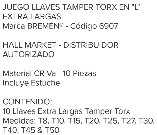Torx en L extra largas tamper Bremen